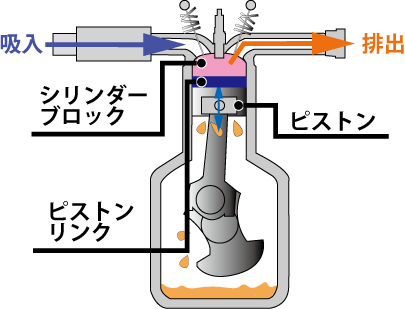 そのために生じる金属同士の摩耗や焼き付き等を軽減するため、エンジンオイルで潤滑する必要があります。