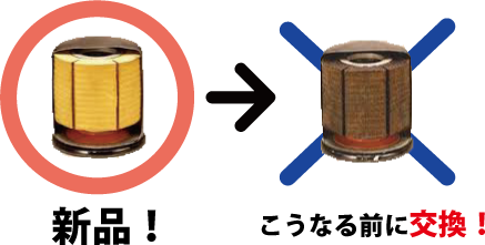 汚れたままのエレメントは、フィルターの役目を果たすことができず、